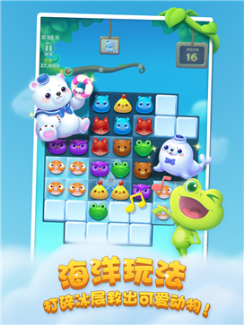 游戲中海油十分可愛的小動物陪我們一起玩,消除的特效也很清新可愛!