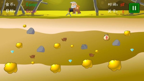 黃金,鉆石和炸藥?沒錯(cuò),你是一名礦工,你的任務(wù)是挖掘盡可能多的黃金。你能進(jìn)出最賺錢的地方。你準(zhǔn)備好了嗎?開始挖金吧!