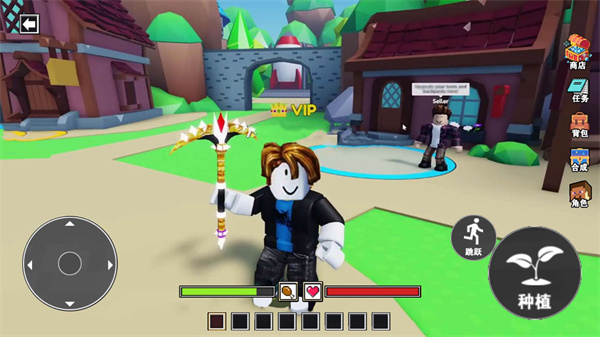 當(dāng)背包裝滿后,我們直接點(diǎn)擊右上角的傳送就能直接回到地面了。這時(shí)候去找標(biāo)有出售的鐵匠,進(jìn)入黃色的圈圈就能自動(dòng)將背包里的礦石換成金幣,然后就可以繼續(xù)去快樂挖礦了!