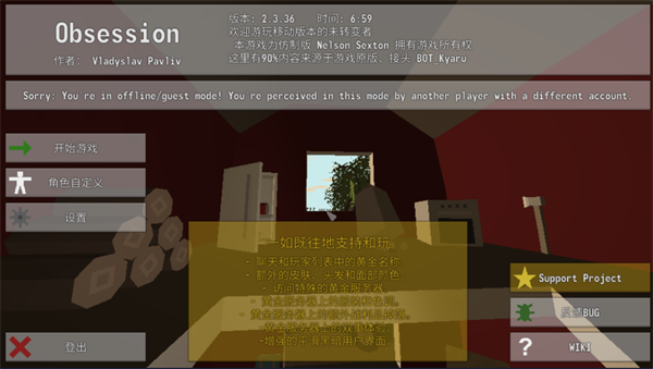 注冊(cè)成功后點(diǎn)擊返回首頁面,進(jìn)行賬號(hào)的登錄;當(dāng)然還可以點(diǎn)擊 離線 模式進(jìn)入游戲;