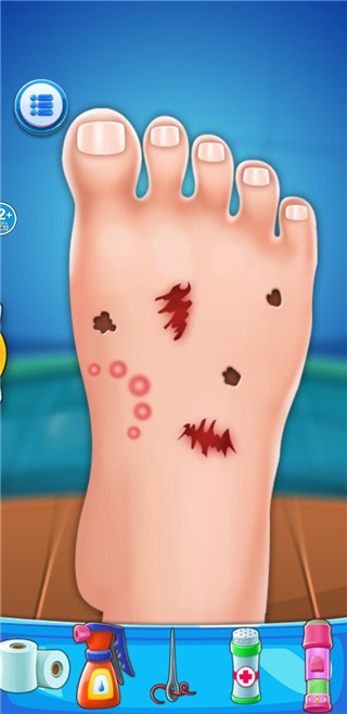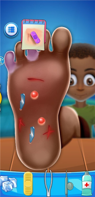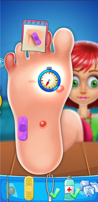 3、然后進行修腳,這里需要將道具拖拽至傷口處便可以開始治療;