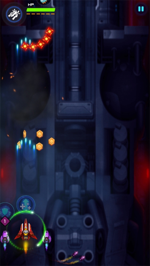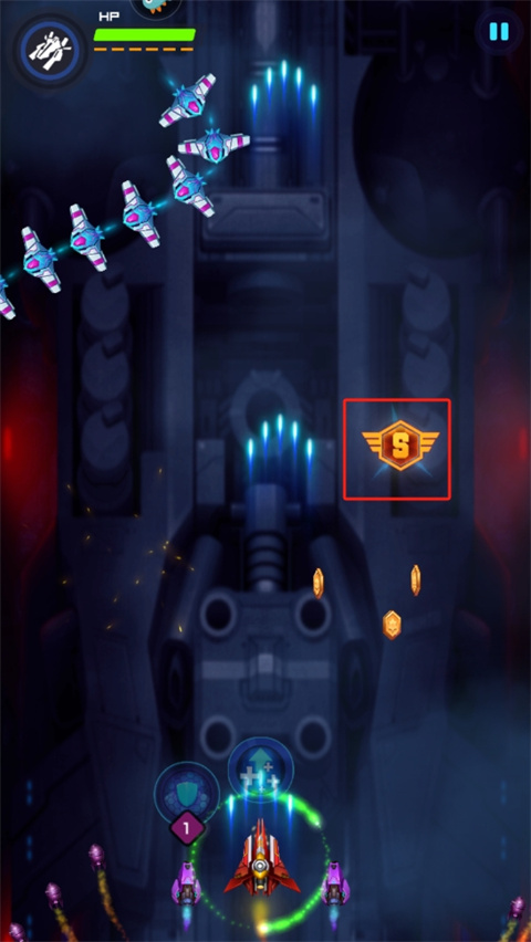 4、松開屏幕游戲自動(dòng)進(jìn)入子彈時(shí)間,這是可以放技能清理地方飛機(jī)或者給己方飛機(jī)加血加盾;