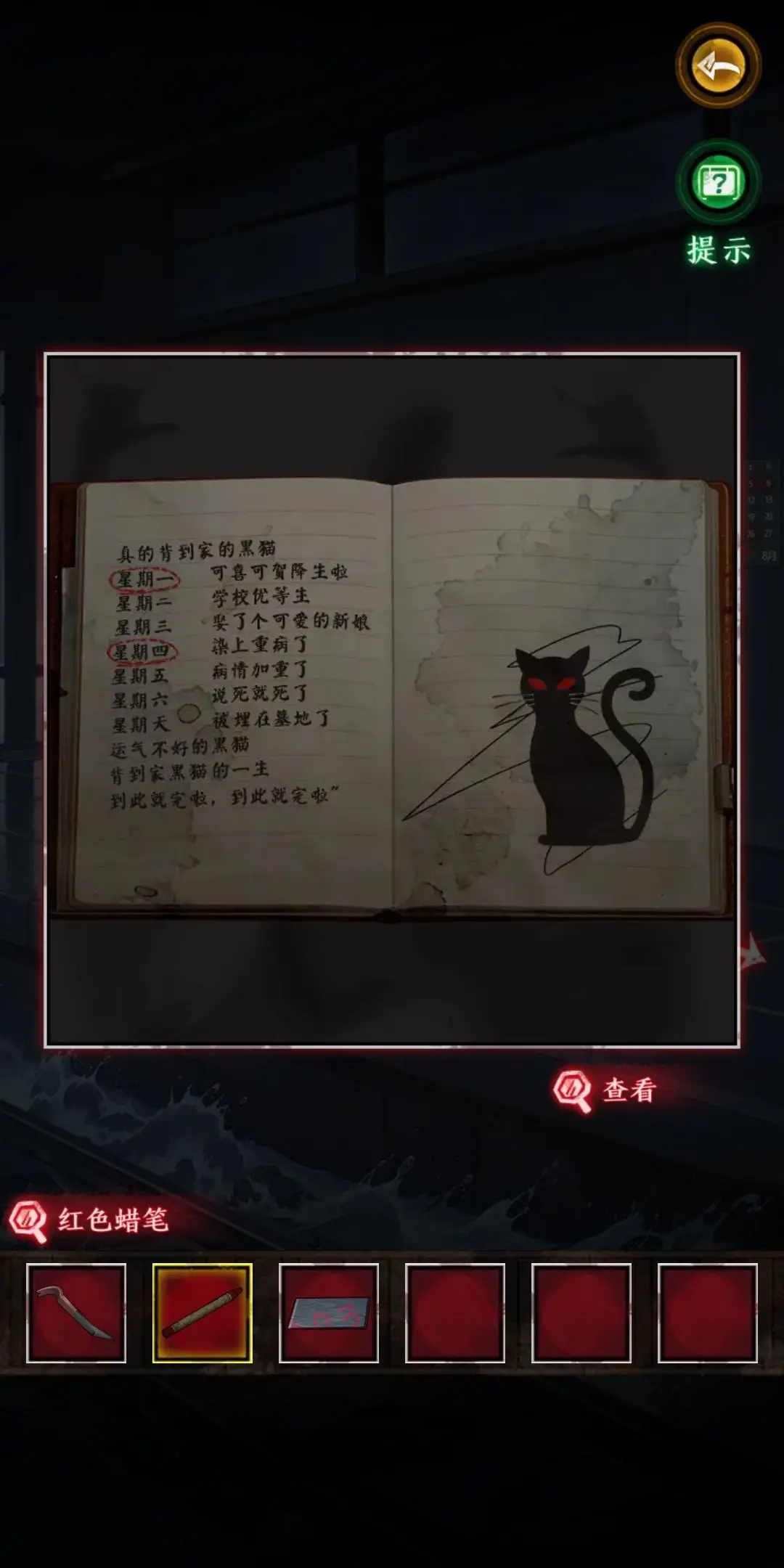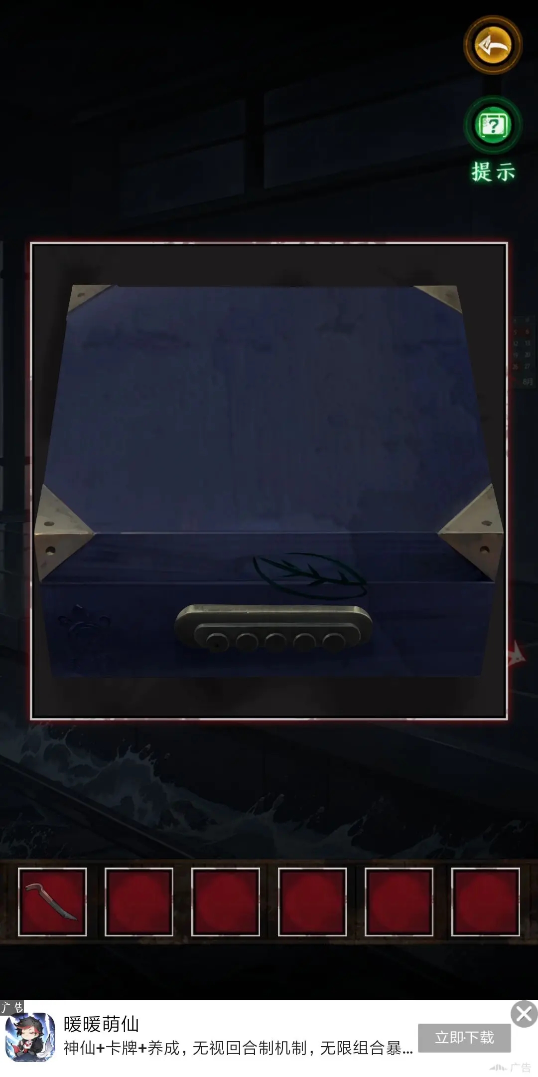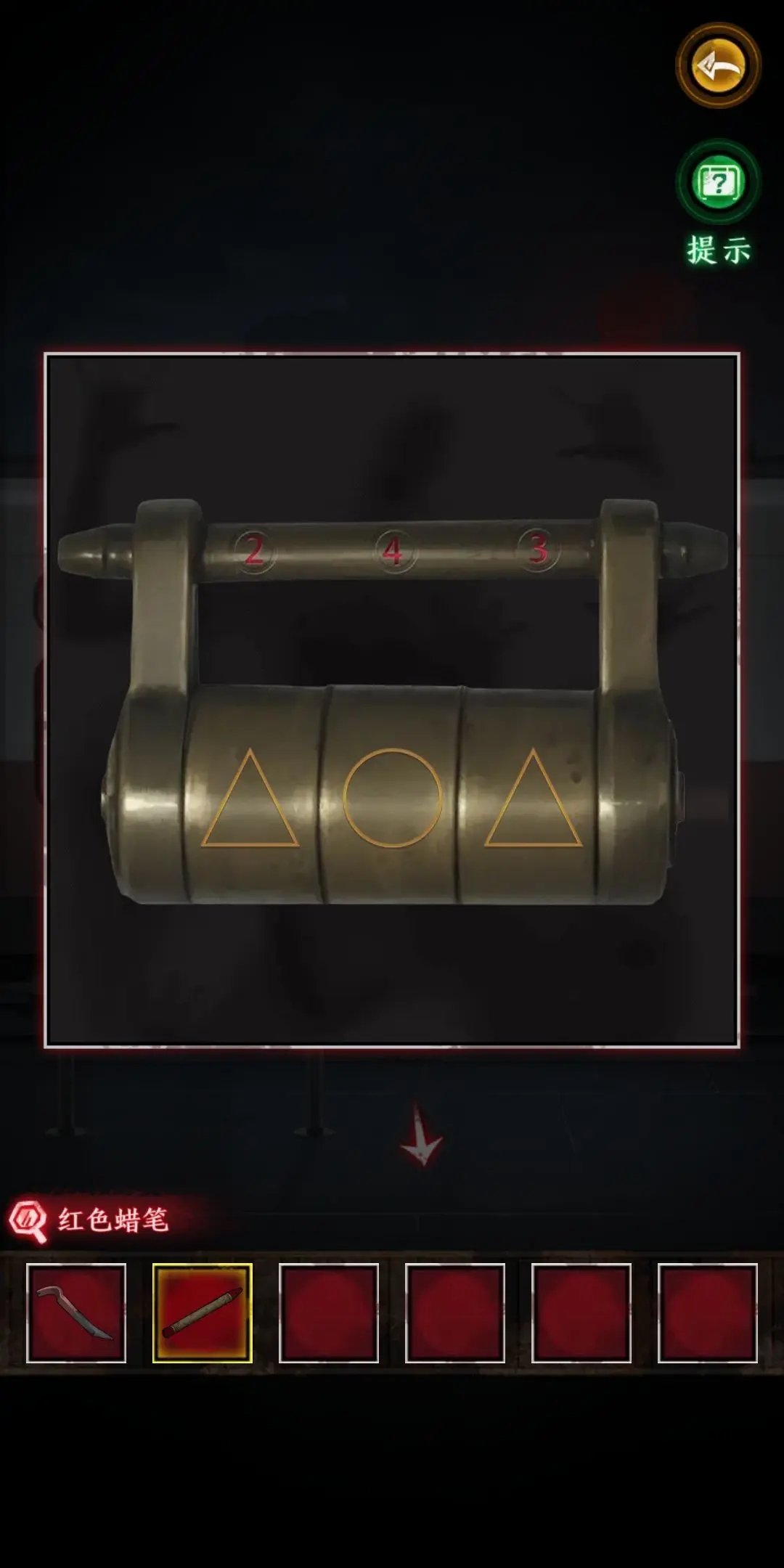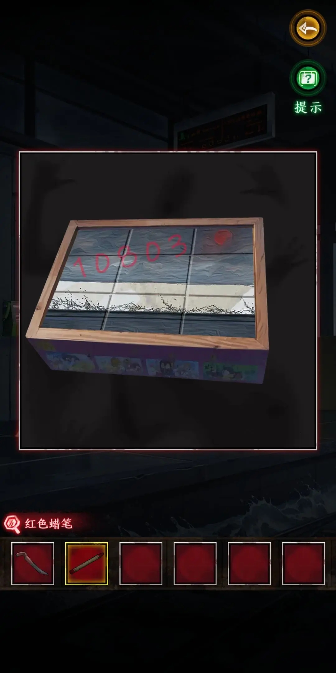4.根據(jù)箱子上葉子的提示,觀察葉子動(dòng)的幅度可以分為微弱,中等,大幅度,簡(jiǎn)稱(chēng)123,觀察后得出密碼為12321。得到紅蠟筆,拼圖碎片和筆記本。