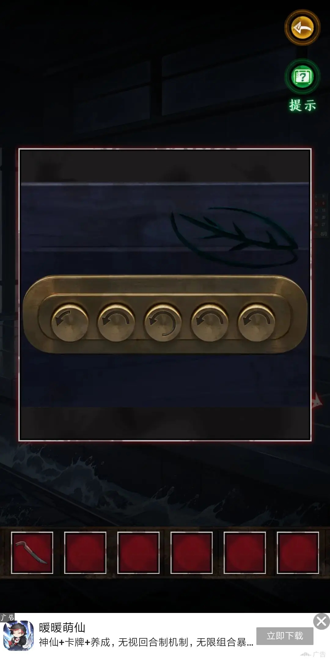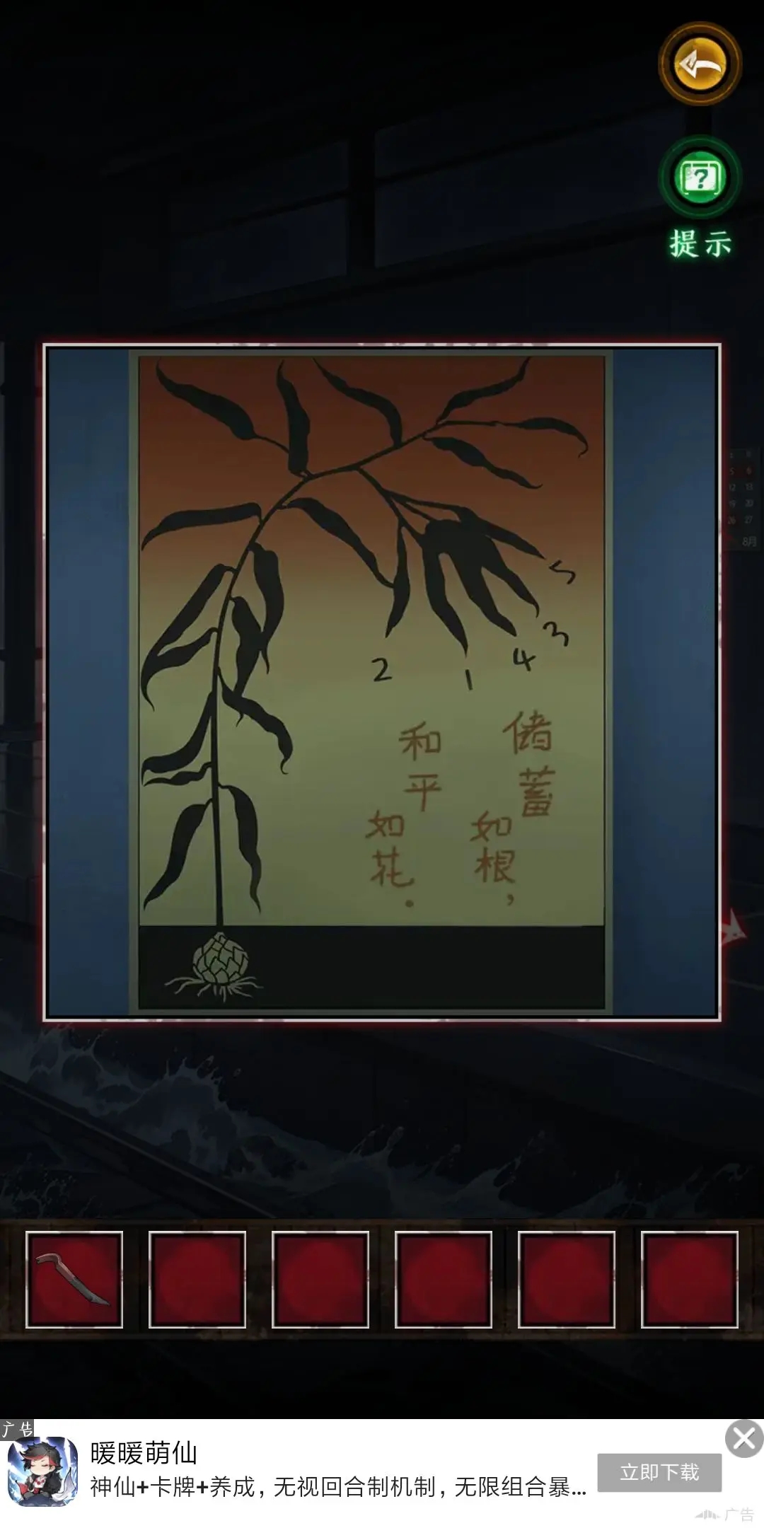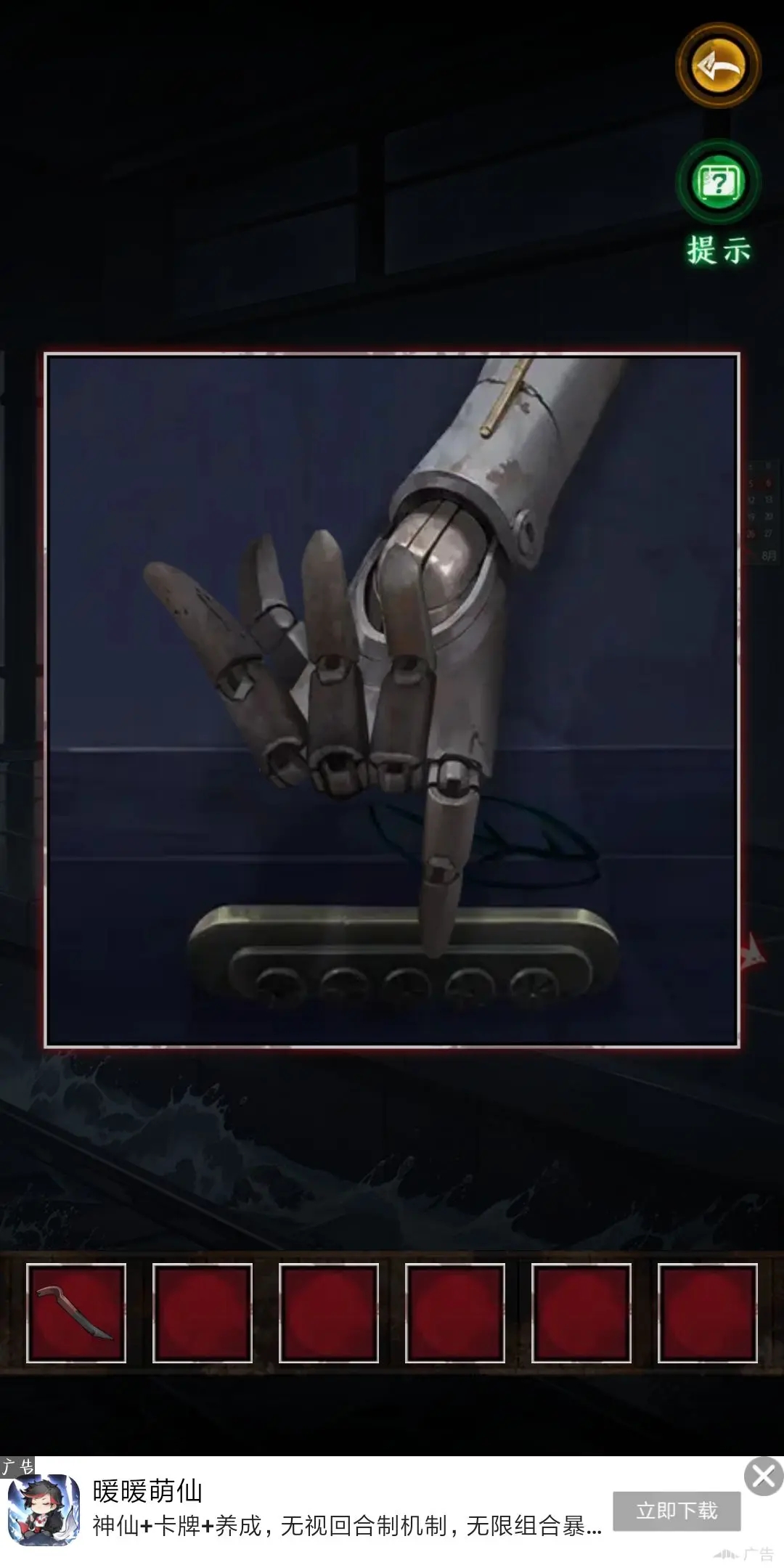 15.得到人偶的手,點(diǎn)擊書(shū)柜最上一行露出的一張紙得到信息“蟬能讓石碎”