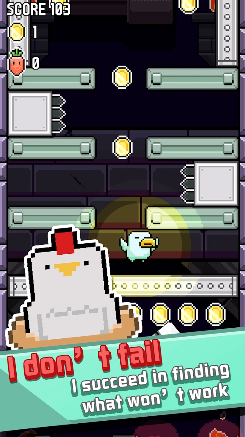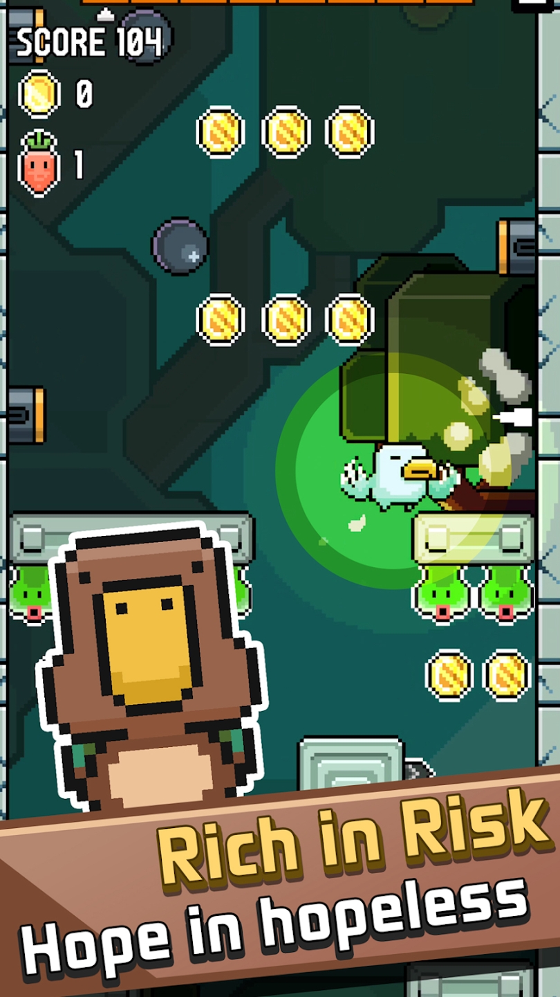 點擊或長按屏幕來控制小鳥收集胡蘿卜和金幣,注意避開障礙物