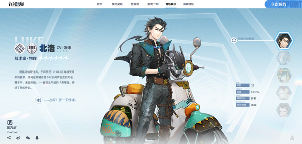 鹿路運(yùn)輸配送員,于森羅歷1119年2月穿越天隙來(lái)到森羅,傳聞在黑曜曾是令對(duì)手聞聲色變的知名賽車(chē)手,未嘗敗績(jī)。直到五年前的「黑曜日」終結(jié)了他的傳說(shuō)。