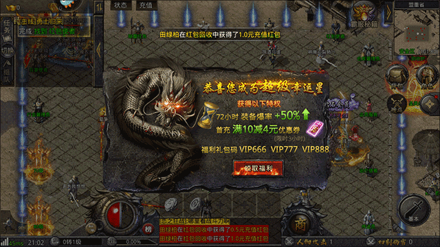 2、紅包回收:在游戲中,所有裝備都能夠通過紅包回收功能,兌換獲得大量的充值紅包。裝備的等階越高,可兌換到的紅包數(shù)額就越大!