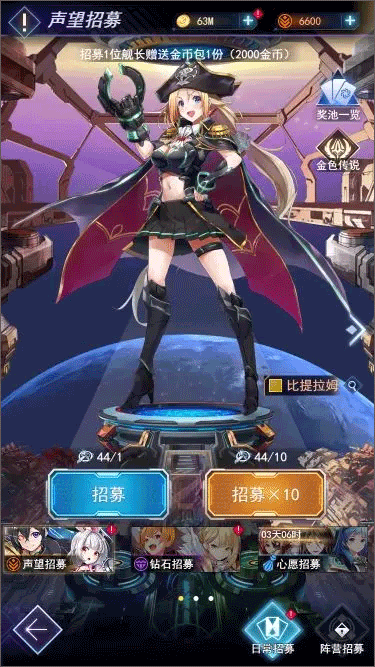 玩家可以在「諾亞之翼」招募到新的星艦,招募分為聲望招募,鉆石招募和陣營(yíng)招募。