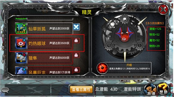 精靈附加屬性:每個精靈都會永久的增加角色的屬性,所以精靈越多,那么總提升的人物屬性也就越多。