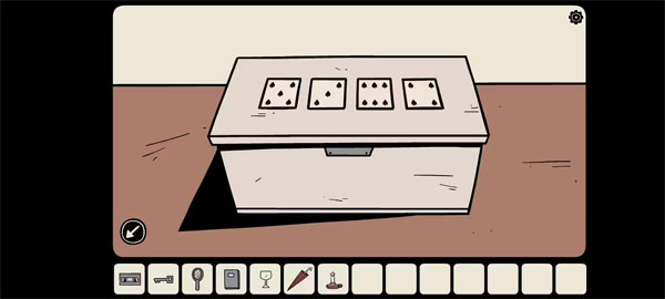 把手和碎玻璃組合可以變成一把小刀,你記得錄像中那女孩在墻上畫著圖案的映像,她是把墻紙揭下來的。你來到對應位置,果然看到那里有道裂縫,你用小刀割開,撕下墻紙,看到墻上畫著一個大大的W?;氐侥怯芯艂€點的柜子門上,需要把黑點連成特定的符號才能打開門,而W正是謎底,柜子里是鑰匙和開關(guān)面板。