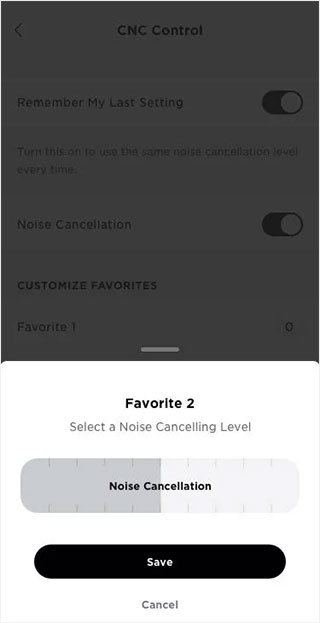 在Bose Music應(yīng)用程序中 ,使用? 您的產(chǎn)品 屏幕上的Noise Cancellation (噪聲消除)滑塊,將噪聲消除從最低(左)調(diào)整到最高(右)。