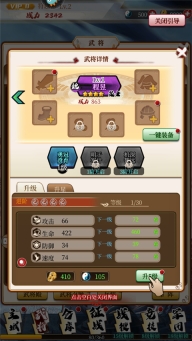 資源足夠的話,點擊升級和一鍵裝備,增強武將的實力;