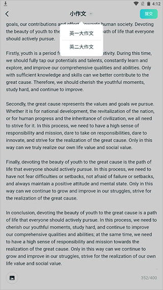寫好后就可以選擇作文類型進(jìn)行提交,提交好需要等待時(shí)間批發(fā)即可