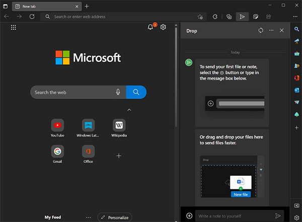 5、在 Edge Drop 的其中一個選項卡中,我們可以看到 OneDrive 存儲容量數(shù)據(jù),這表明 Drop 傳輸內(nèi)容將計入 OneDrive 存儲空間。