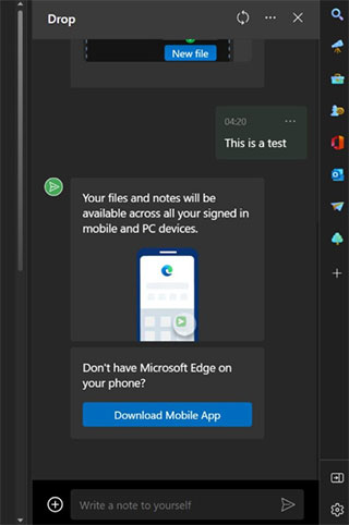3、在測試發(fā)布一條文本消息后,其他所有安裝了 Edge 瀏覽器且支持該功能的設備都能夠收到這條消息,桌面或者手機上,都會有通知: