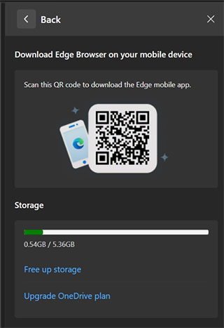 據(jù)測試,微軟沒有為 Edge 開發(fā)新的云存儲服務,而是使用 OneDrive。為了訪問該功能,用戶必須登錄到 Microsoft 帳戶,并且存儲空間取決于 OneDrive 的空間。