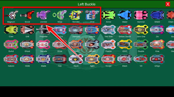 《假面騎士極狐》中出現(xiàn)的主要騎士帶扣排在前面,除此以外還有假面騎士其他系列的聯(lián)動音效帶扣哦!