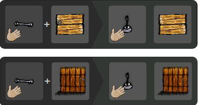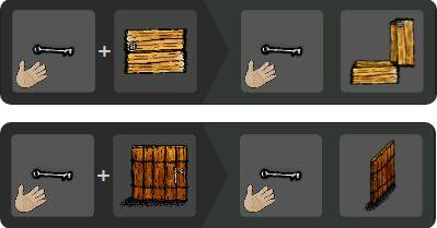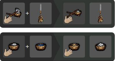 *籃子:尖石+蘆葦叢=蘆葦,蘆葦+蘆葦=籃子。籃子有3個容量,拿起有物品的籃子用↑滑動,前期運輸物品與采集必備