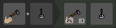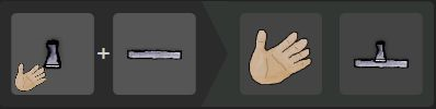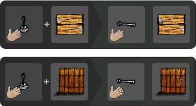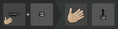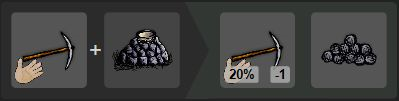 鋒利的石頭(尖石):石頭(圓石)+大巖石,割許多東西都需要它(拿石頭在大巖石上劃,大巖石搬不走,除非合成鐵器)
