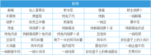可用尖石割下的食物:牛蒡根+9,野胡蘿卜+7(先用手拿下種子)