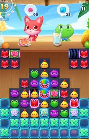 海邊有椰子和冰淇淋店,想吃到美味的椰子需要完成所有小動(dòng)物的收集目標(biāo),想吃到冰淇淋就要消除水果上的所有冰塊,當(dāng)前所有水果收集完畢后還會(huì)產(chǎn)生下一波,完成所有顧客的訂單就能順利過(guò)關(guān)。