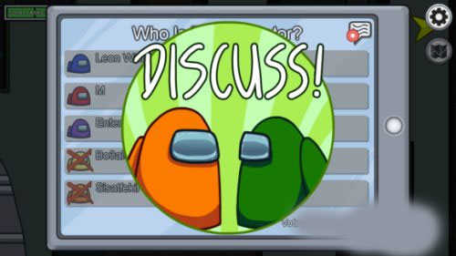 是本游戲的強制環(huán)節(jié),當有人報告發(fā)現(xiàn)尸體的時候,所有人進入討論,并且進入投票,票數(shù)最多的被扔出空氣閘。另外,在游戲過程中,也可以按下緊急按鈕,強制進入游戲討論,緊急按鈕每局游戲也有限制次數(shù)。