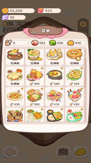 菜單前幾個(gè)第一級(jí)不提高人氣,之后的升級(jí)到第二級(jí)提高一個(gè)人氣,第三極就是滿級(jí),升到第三級(jí)提高兩個(gè)人氣。升級(jí)同時(shí)會(huì)提高價(jià)格,也就是餅干(可用于買家具)數(shù)量,升級(jí)會(huì)有前提條件,達(dá)到條件會(huì)有上升箭頭如圖所示;廚藝挖掘時(shí)請(qǐng)注意不要點(diǎn)擊太快,可能錯(cuò)過消除道具,可快速連續(xù)點(diǎn)擊不同行,不同列,離得較遠(yuǎn)的,以降低失誤率