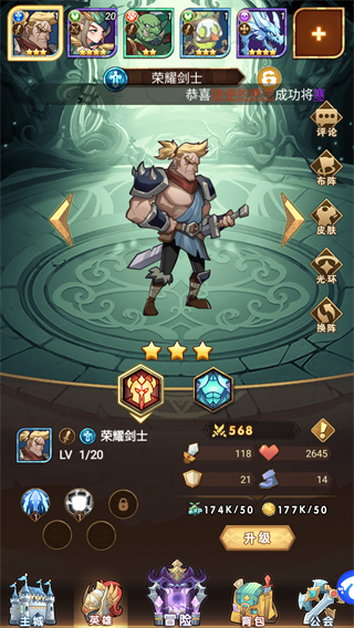 點擊冒險進(jìn)入冒險關(guān)卡,能夠快速升級自己的英雄和自我經(jīng)驗,讓自己快速成長!