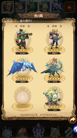 點擊布陣可以調(diào)整英雄們的合適站位;