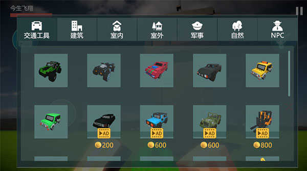 背包里有各種建筑、汽車、人物模型,隨意選擇一輛汽車。
