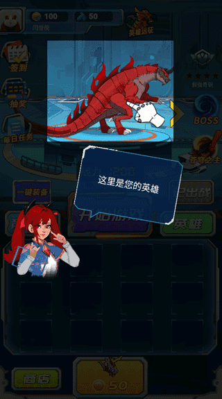 之后跟著教程走,點擊合成區(qū)域,選擇購買你的機甲英雄;