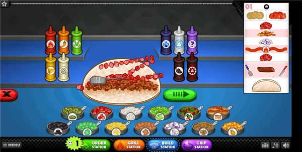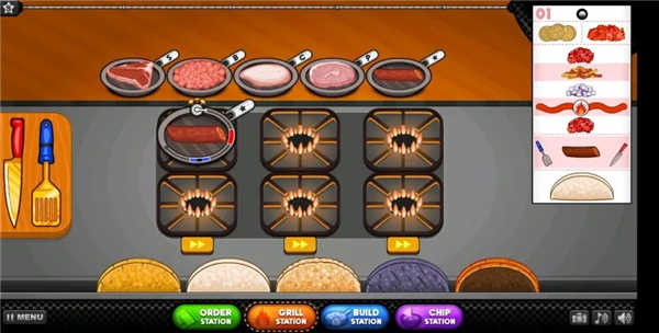在本站下載安裝并打開游戲,進入游戲后,制作塔克的第一步就是煎肉。