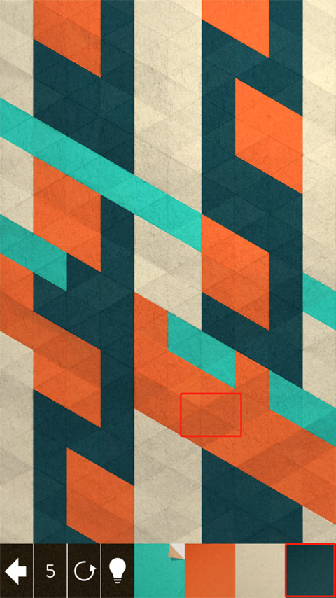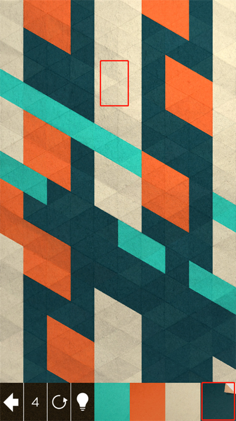 游戲左下角數(shù)字是剩余步數(shù),我們需要在步數(shù)耗盡之前將整張折紙變成任意一種純色。