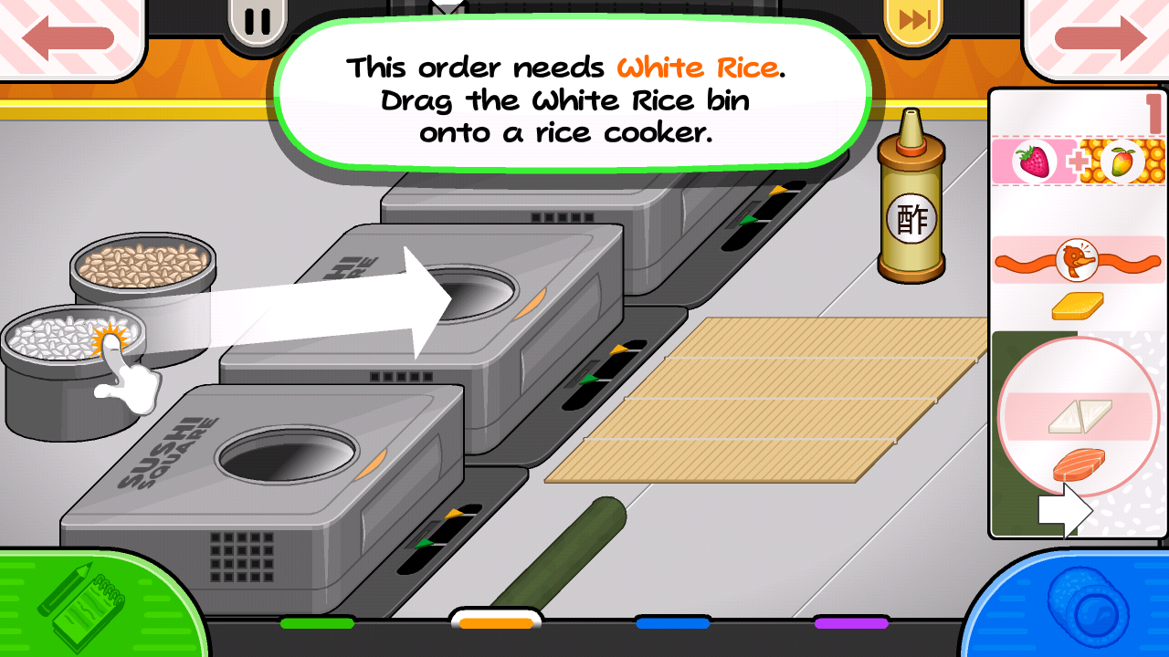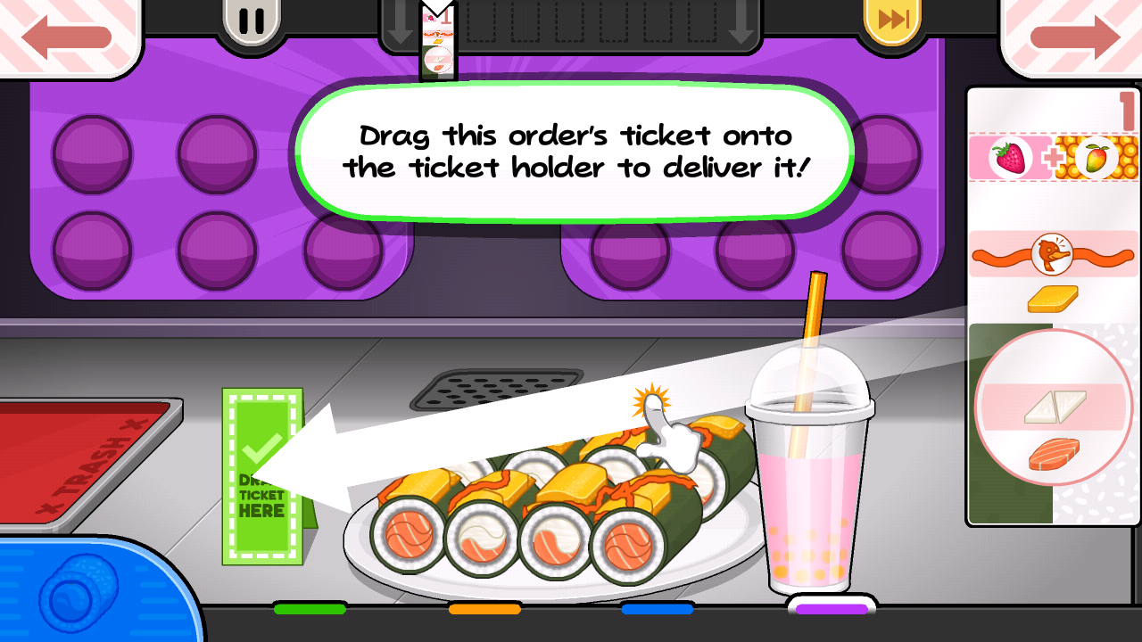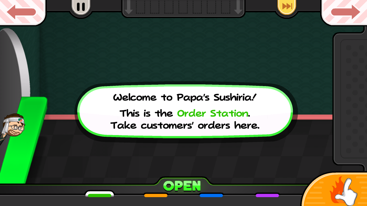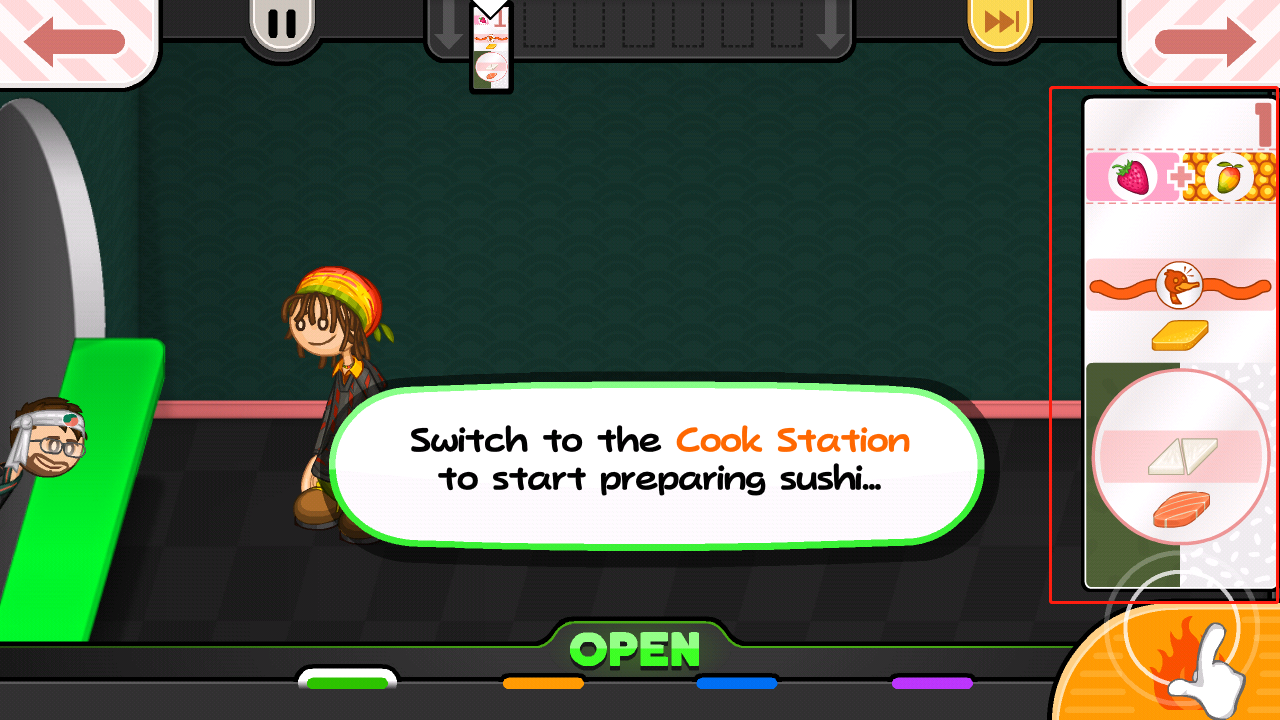 接下來(lái)就會(huì)為玩家介紹壽司店,點(diǎn)擊右下角的按鈕;進(jìn)入訂單站,顧客的訂單都在這里;