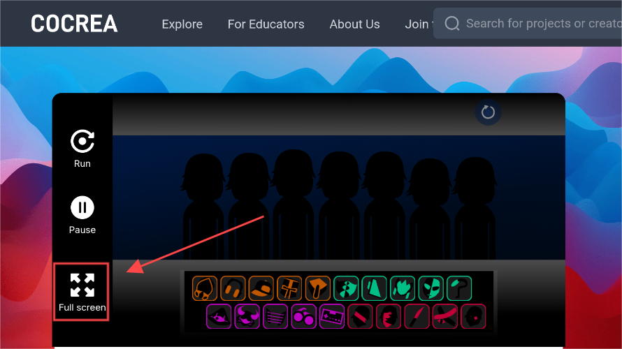 運(yùn)行游戲并不是全屏,點(diǎn)擊左下角的Full screen即可開(kāi)啟全屏模式