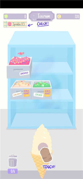 玩家需要根據(jù)顧客的口味選擇不同的冰淇淋桶,將蛋糕與漿果、水果、堅(jiān)果等配料混合。