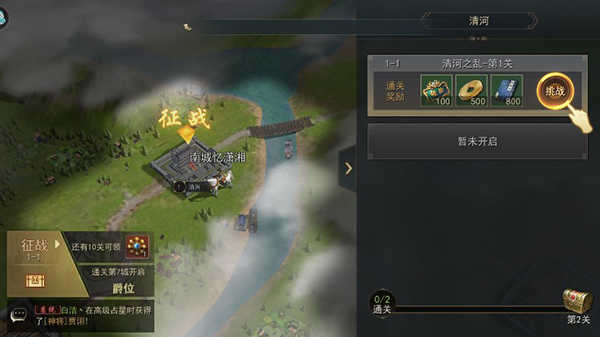 玩家點擊左下角征戰(zhàn),再點擊右邊挑戰(zhàn)即可進入關(guān)卡。