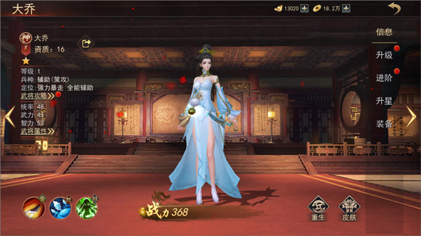 武將介紹:大喬,廬江郡皖縣人,與小喬并稱為“江東二喬”,傳說為絕世美女。
