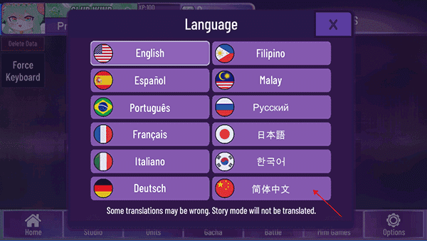 進入游戲后,在主界面點擊右下角【愛心圖標】,可以設置【簡體中文】;