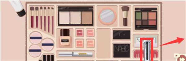 首先將每一個化妝品放到相應的格子當中。