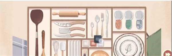 每一個餐具有自己專屬的格子。