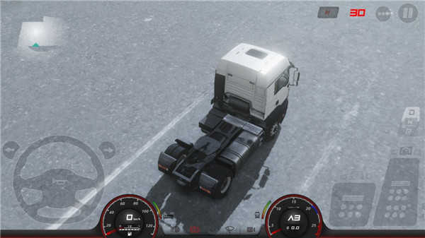 點(diǎn)擊右上角菜單,點(diǎn)擊左側(cè)鑰匙圖標(biāo)啟動(dòng)卡車,即可開始按踏板操作,坐標(biāo)為方向盤,右側(cè)為剎車和油門,油門上方為前進(jìn)和倒擋