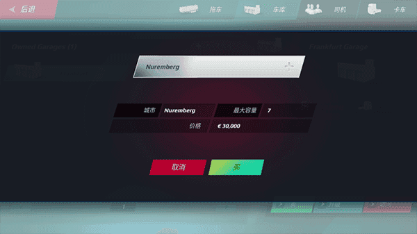 這里我們看見有一個(gè)購買新車庫選項(xiàng),點(diǎn)擊進(jìn)入我們即可購買汽車。