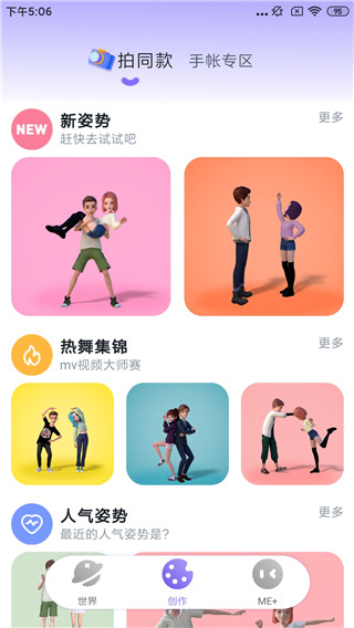 3、在界面有多個模塊可以創(chuàng)作,拍同款以及me+
