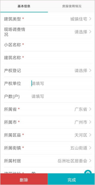 11、跳轉(zhuǎn)信息填寫界面,再點擊【刪除】完成底圖房屋刪除。