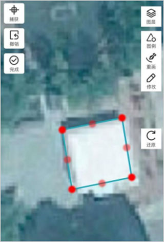 9、點擊建筑地址的定位圖標,進入地圖界面,提供【重畫】、【修改】對底圖數(shù)據(jù)進行編輯修改。