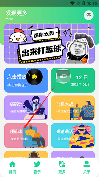 4、在更多游戲界面點(diǎn)擊頂籃球,還有其它游戲可以解鎖。