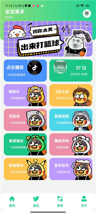 提到“雞你太美”這個(gè)網(wǎng)絡(luò)流行語(yǔ),大家都應(yīng)該有所耳聞。這個(gè)曾風(fēng)靡一時(shí)的搞笑梗,源于“因你太美”的發(fā)音過(guò)快,被網(wǎng)友們紛紛惡搞。今天要介紹的這款 雞樂(lè)盒7.0版 ,同樣是網(wǎng)友制作的產(chǎn)品。它融合了多種鬼畜素材,讓你能夠自由生成各種魔性的音頻,并搭配各種視頻素材,輕松創(chuàng)作出各種搞笑內(nèi)容。該軟件對(duì)蔡徐坤在網(wǎng)上走紅的一首歌曲進(jìn)行了拆分,每句歌詞都對(duì)應(yīng)一個(gè)按鍵進(jìn)行播放。你可以快速點(diǎn)擊不同的按鍵,使本已十分搞笑的音樂(lè)變得更加有趣。在這里,你可以隨著音樂(lè)和坤坤一起打籃球,一起跳“雞你太美”。此外,這款軟件針對(duì)許多設(shè)備進(jìn)行了優(yōu)化,音效也更為魔性。眾多粉絲都能在這里與偶像一起“雞你太美”,隨意點(diǎn)擊各種模擬音效,既有趣又好玩。感興趣的朋友們歡迎下載體驗(yàn)。