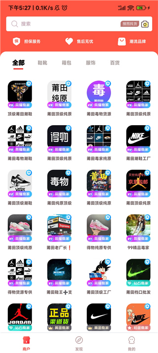 2、進入軟件可以看到滿滿一個界面的商戶,涵蓋了各種商品;