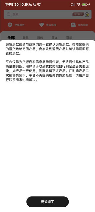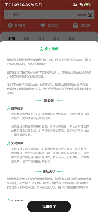 5、點擊搜索框下方的擔(dān)保服務(wù),讓用戶放心買;